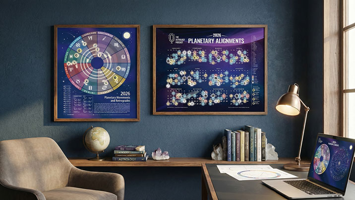 Our posters illustrate the astrology of 2026 at a glance, with the same graphics used in The Astrology Podcast forecast episodes.
